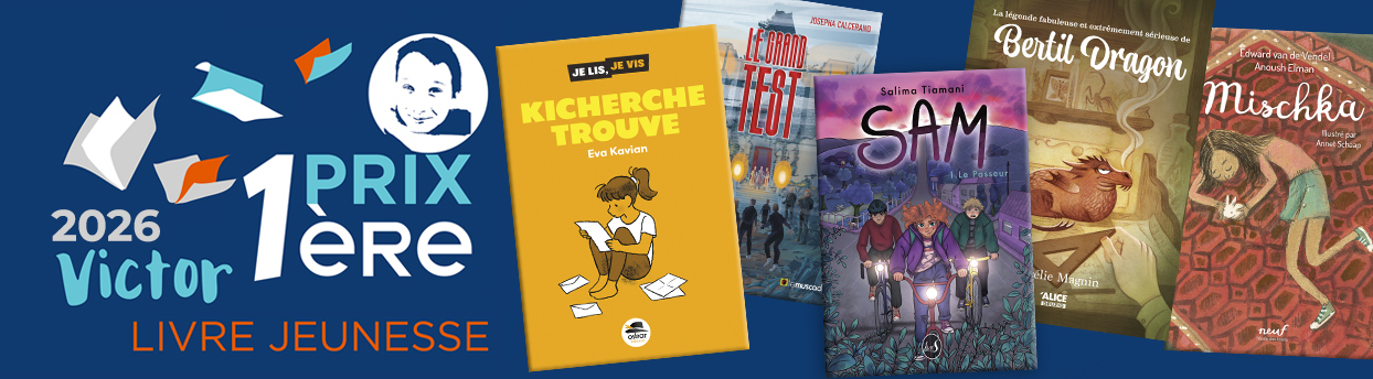 Comme chaque année, 5 ouvrages sont sélectionnés par un jury composé de professionnels de la lecture et de jeunes lecteurs et lectrices. Les ouvrages en lice pour l’édition 2026 du Prix Première Victor du Livre Jeunesse étaient :